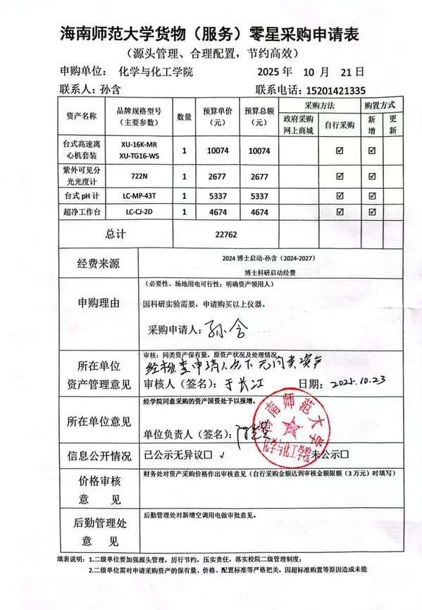 因科研工作需要,拟购买离心机1套、分光光度计1台、台式pH计1台、超净