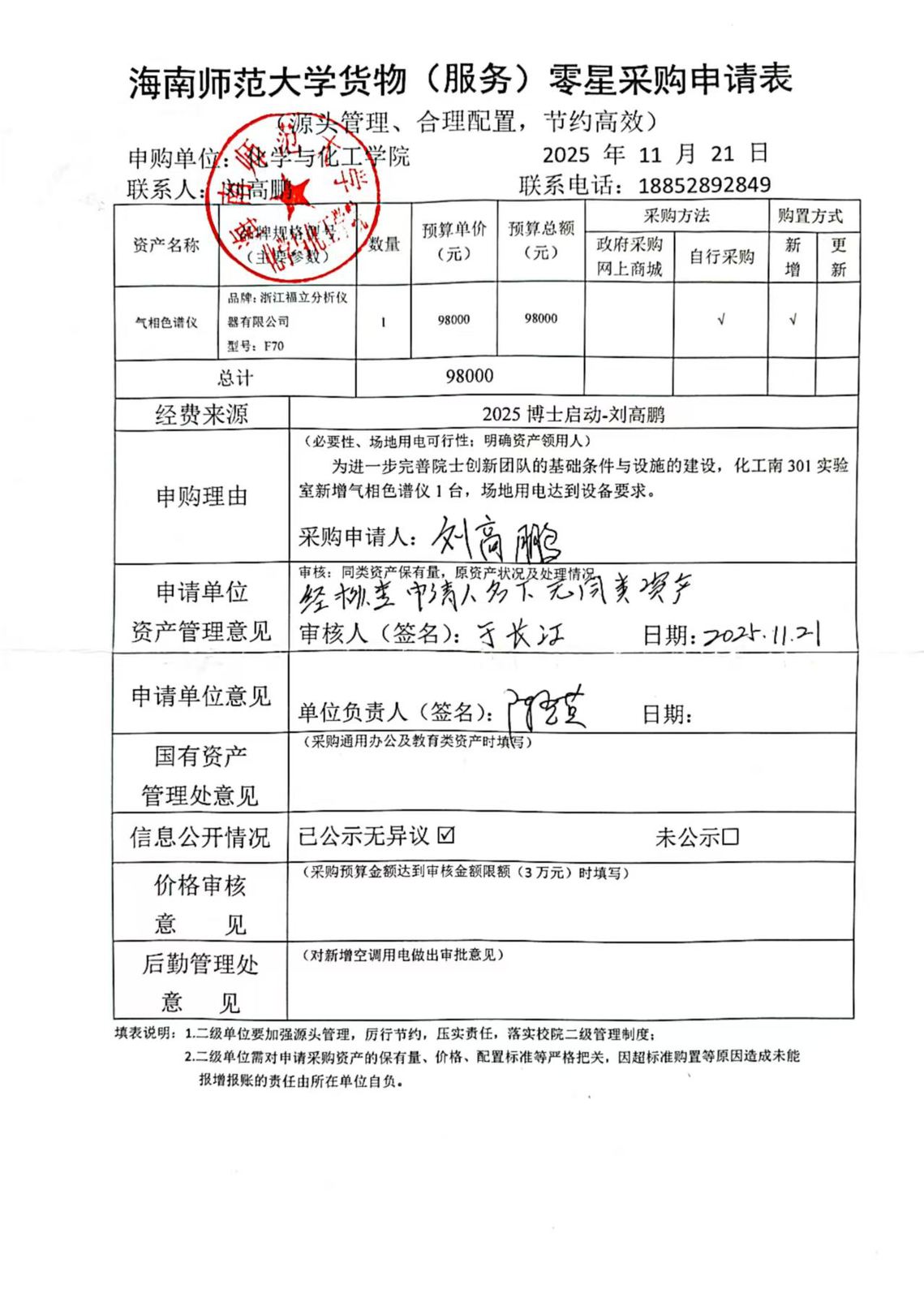 因科研工作需要,实验室拟购买气相色谱仪1台,现公示如下:
