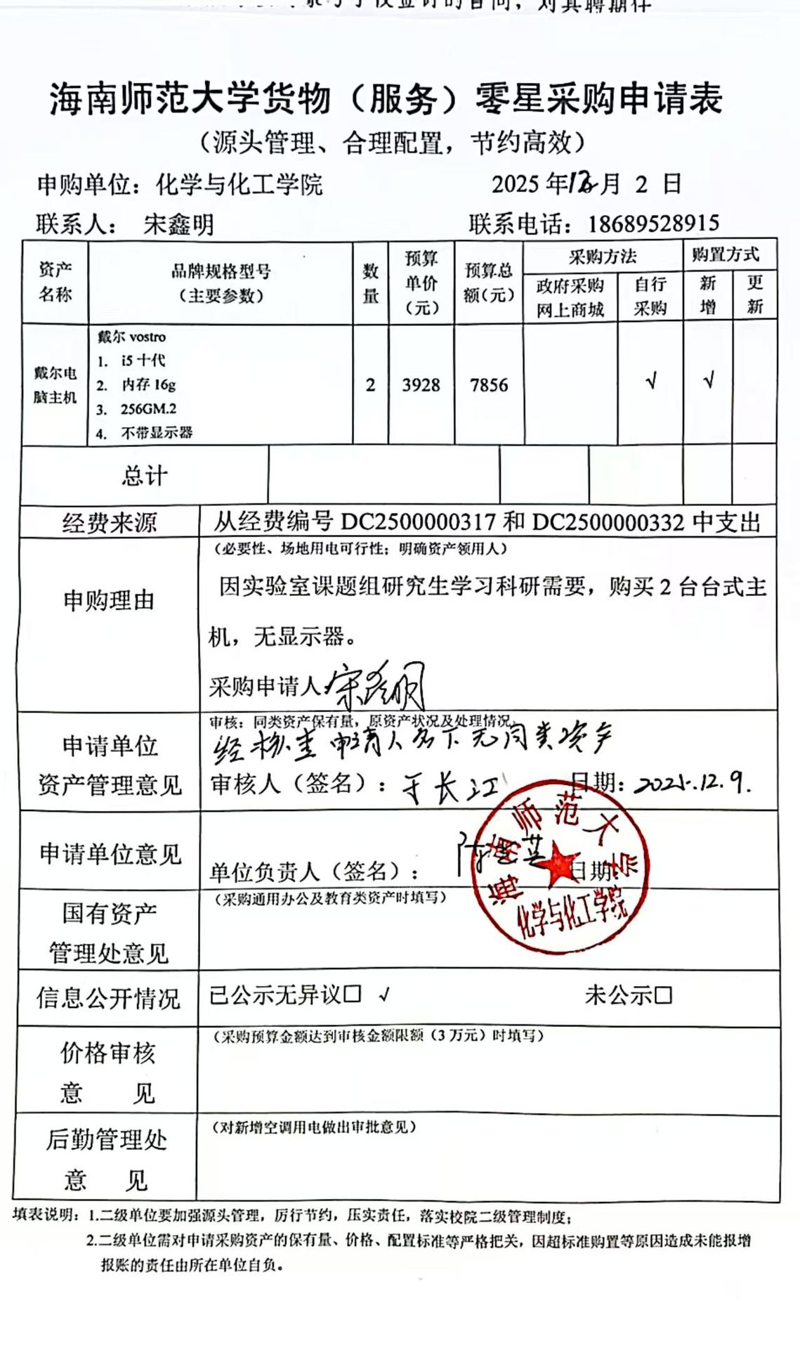 因实验室课题组研究生学习科研需要,拟购买2台台式主机,现公示如下: