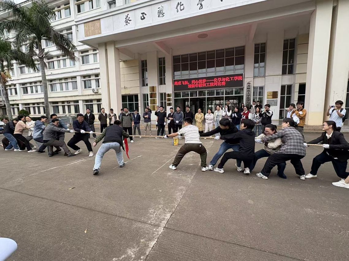 为丰富教职工精神文化生活,增强团队凝聚力与向心力,12月26日下午,由化学与化工学院工会举办的学院迎新年教职工拔河比赛在化工校道上拉开帷幕,六十余名教师踊跃参与拔河比赛。
