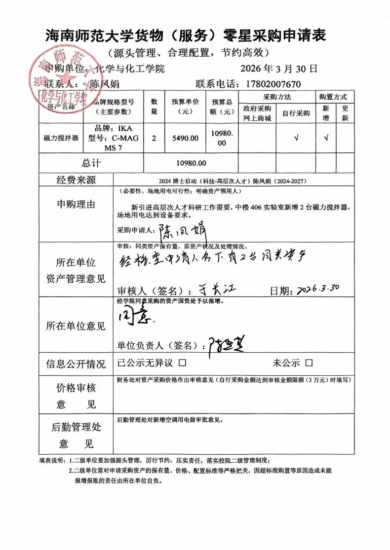 因科研工作需要,化工楼中406实验室拟采购磁力搅拌器2台,现公示如下: